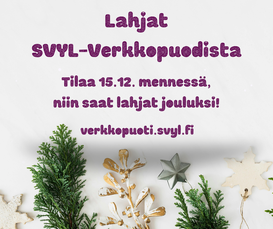 Kun tilaat lahjat SVYL-Verkkopuodista viimeistään maanantaina 15.12., ehtivät ne jouluksi perille!